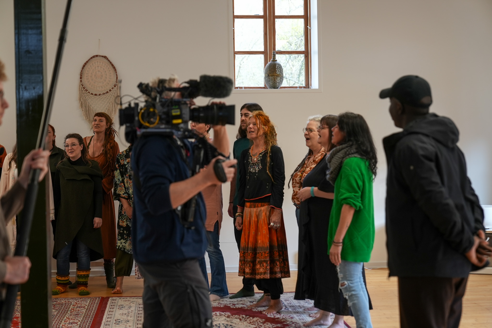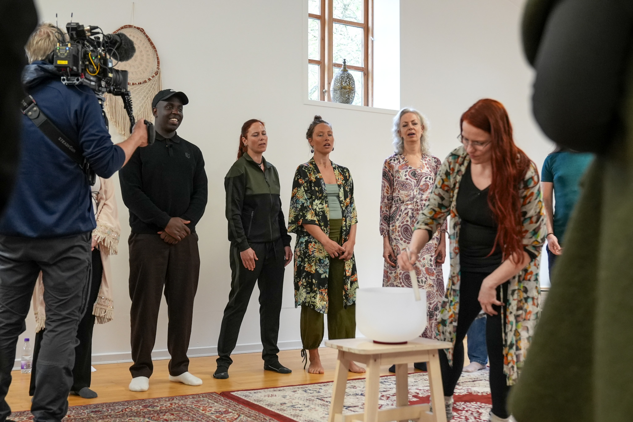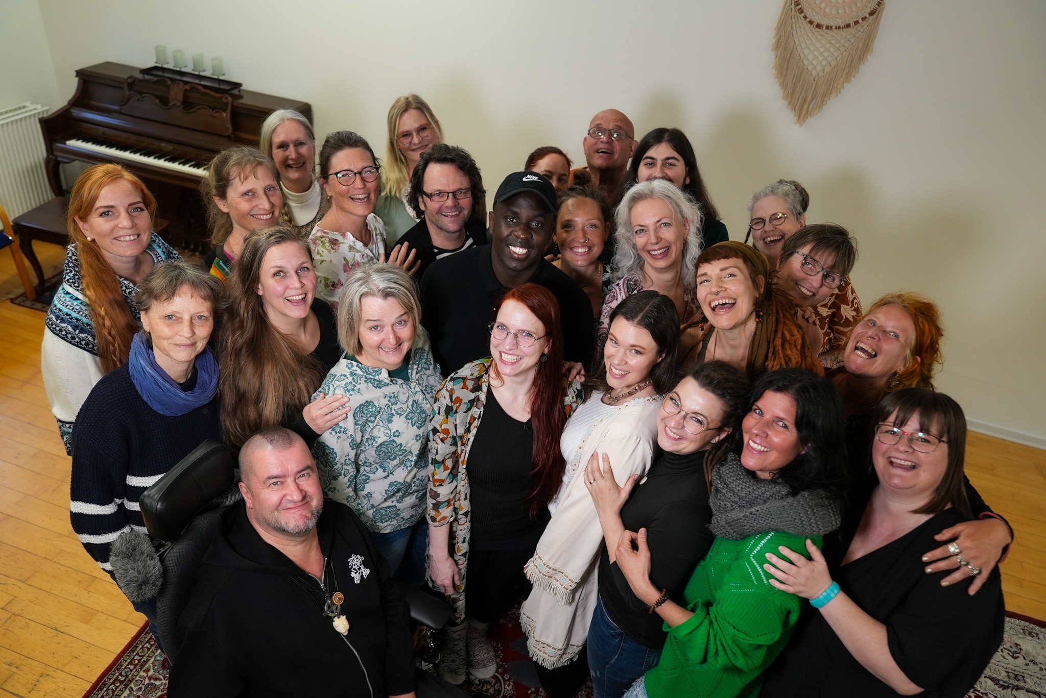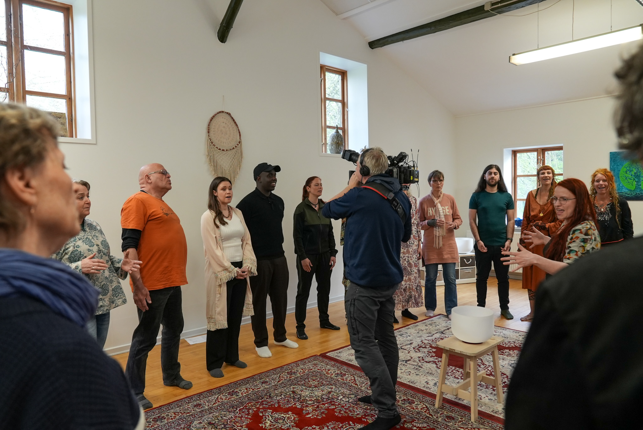 Når vi er så meget i nuet, er det ikke altid let at huske at få dokumenteret, men indimellem lykkedes det, her er billeder fra kor sessioner på Fælles ferie i Sverige, Wild Woman Nordic, kor sang i Svanninge Kirke, OG(!) selvfølgelig da vi havde besøg af Melvin Kakooza til optagelser af Det Intuitive Kor til programmet Helt Sort som blev vist på tv2 d. 13/12 2025 – det var vildt og fedt <3