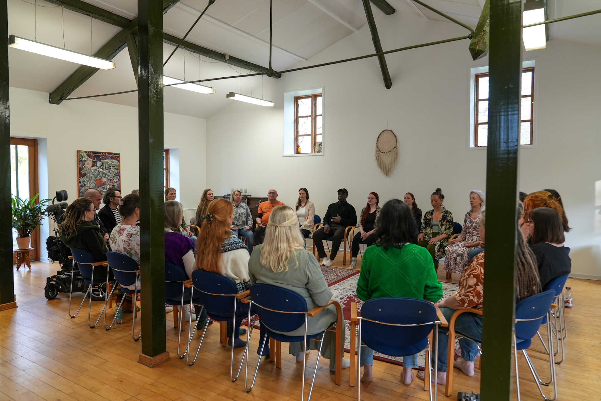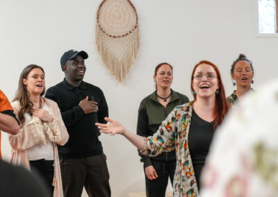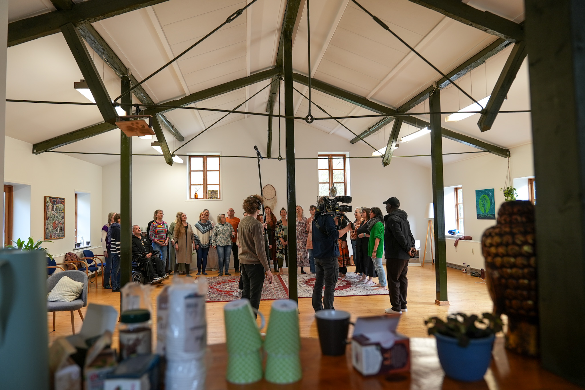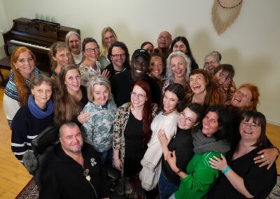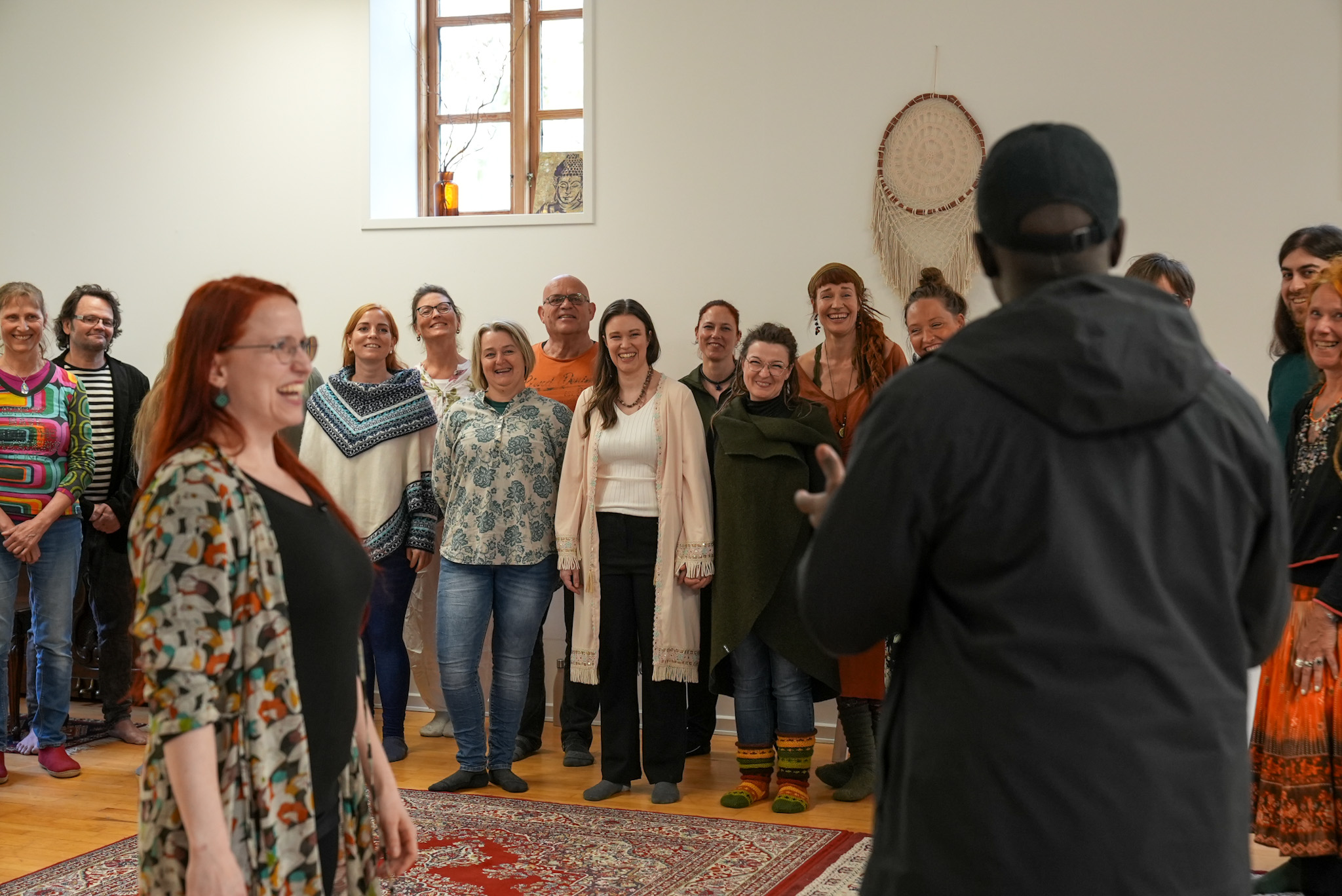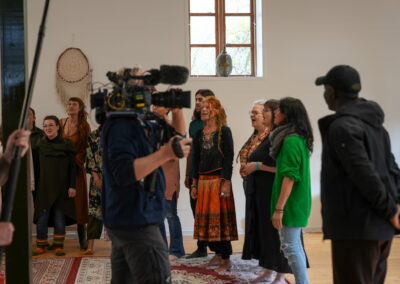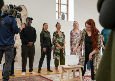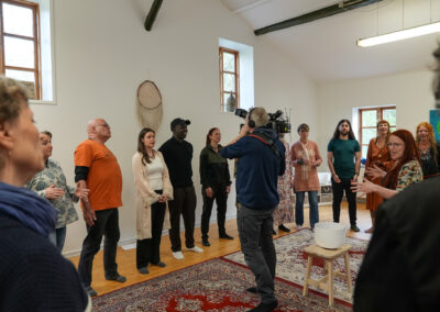 Når vi er så meget i nuet, er det ikke altid let at huske at få dokumenteret, men indimellem lykkedes det, her er billeder fra kor sessioner på Fælles ferie i Sverige, Wild Woman Nordic, kor sang i Svanninge Kirke, OG(!) selvfølgelig da vi havde besøg af Melvin Kakooza til optagelser af Det Intuitive Kor til programmet Helt Sort som blev vist på tv2 d. 13/12 2025 – det var vildt og fedt <3